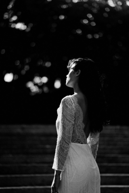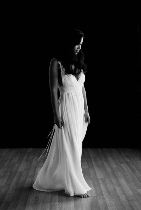Chic and edgy luxurious light gowns that marry traditional silk fabrics with edgy detailing for a modern bride.